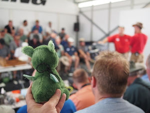 There were a couple of hours between sessions, and I took myself back to the Quiet Technologies booth, determined to get myself a new headset. My existing headset is working well, but it does suffer from being big and heavy, and in warm weather, the insides of the earcups start to resemble miniature saunas in a most unpleasant way. So I bought a new QT Halo headset that I can work with on my way back to Seattle. I had tried to get an Oregon Aero microphone muff for my current headset, but couldn't remember for sure which style of microphone it had, so they were reluctant to sell me the wrong size. I stopped by the booth again after picking up the Halo and got one to fit the new headset.