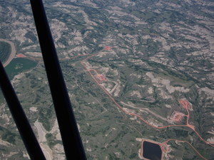 My course between Miles City and Minot was a straight line, mostly because there was no point zigzagging around. The ground is universally flat, and the centers of population, small though they were, were at least as concentrated on that straight-line path as they would be by flying from cluster to cluster of buildings or tiny airports. It was interesting to see for myself that the oil fields of North Dakota are not Ralph Bakshi-esque hellscapes of smoking ruin, but perfectly normal looking green and brown rolling hills punctuated by tidy little pumping rigs.
