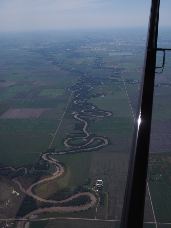 The Red River winding south toward Fargo