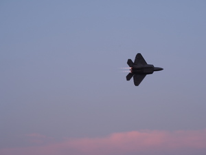 It's funny. I definitely appreciate the skill and work that goes into these acrobatic displays. I know how hard it is to do that. But the biggest reactions always come from the dick-swinging military displays, which really put me off. I just think about how much money we're spending to produce these terrifying death-delivery machines, and I imagine what it must be like to be on the wrong end of a fighter jet, probably on the ground having done nothing more than been born in the wrong country. This F-22 has flown over the airport multiple times each day, and I wandered past it on the ground yesterday: there were at least 10 soldiers I could easily see standing in a loose perimeter around it behind a rope barrier, M-16 rifles in that sort of resting-ready position, as if they expected terrorists to come at them any minute now. I was quite sure those rifles were loaded, and got out of the area by the most direct path possible.