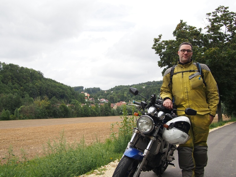 Europe 2013: Into AustriaSeptember 1, 2013 Side note I forgot to mention on the Nuerburgring story: if you noticed all those flags up in the corner on the GPS's track display? I discovered mid-Ring that my first-aid kit, which is only loosely attached to the tank bag, had bounced up at some point, and was feverishly pressing random buttons on the GPS. Fortunately, that didn't stop it recording speeds or tracks, but it was still a bit goofy to see this bag bobbling up against the GPS, and the GPS asking if I wanted to record another waypoint. In all, I can't have looked at the GPS more than about three times on the whole Ring. I also, out of curiosity, filled the tank just before, then just after, the trip around the Ring (including the trip to and from the campsite, so it's not the whole story). I've been averaging about 44-45 MPG over the whole trip. I've gotten up as high as 48.6 MPG, but for that trip to the Ring, one lap, and back, I dropped down to 35 MPH. Give it, as Bertie Wooster might say, a snootful of the good stuff, and it goes with gustso, but it does drink heartily from the fruitful cup. Interesting side-side note re gas mileage: I got 33 MPG while riding around in Cork traffic, to put things in perspective. Today's trip was from Lauterbach, in upper Bavaria (if I may rightly call it that) to Linz, in upper Austria. Lauterbach is a miniscule ort in the middle of a bunch of fields, the highlights of which include cows, or corn, but never cows *and* corn. The campsite itself, Mohrencamp, is nicely situated next to a little man-made lake, with a largeish area for tents next to the lake, separated by some hedges from the standing ground for trailers and motorhomes. As I was eating my breakfast for the day, a small, tow-headed child tripped over to me and said, "Coffee?" I smiled back at him and said no, thank you, I didn't much care for coffee. He tripped off, and a few minutes later, another, slightly older and slightly less tow-headed child walked over and said, "Would you like some tea?" I should note that the first child actually said "Coffee?" in English, while the second child (having realized that, despite my Irish license plate, I could speak German) spoke to me in German. I said sure, and introduced myself to the family, all of whose names (except Jan, which is also how I introduce myself in German sometimes) I have of course forgotten. There followed a polite but more or less meaningless conversation on general topics, as I drank my hibiscus tea, which was quite nice. I'd also gotten an initially-English conversation from another gent last night, who introduced himself and, it turned out, had worked in Detroit for a few years. It's pleasing to note that we generally defaulted to German, so clearly my German is still good enough. We concluded our conversation as I finished my tea, and I excused myself to go finish packing and get under way. The day threatened rain, but it never quite materialized. It was certainly never sunny, until much later in the day. Yesterday, I had a bout of confusion when I realized that the crossed-out route on the signs I kept passing was the route the GPS was trying to send me down. The GPS has absolutely no way I've been able to discover to mark a road as closed, and ask it to reroute based on that closure. So I spent ten minutes riding around more or less at random before I finally pulled over and examined the map to see what alternatives I had. As soon as I go far enough along an alternative route, whatever algorithm in the GPS's program will recognize that it's shorter to go the way I'm going than to turn around and use the road that can't be traversed. Today featured another such closure, on the B8 to Regensburg. Fortunately, I caught it in time, and followed the signs that indicated an autobahn route to Regensburg. The GPS was mightily confused, but I pretty much just ignored it, since the German road signs are quite good as long as you know the name of the town that's in your direction of travel. As long as I was on the autobahn, I gave the bike a snootful of the good stuff again, and got it up to 167 km/h (or 2 km/h faster than I reportedly went around the Nuerburgring). This was with gear on the back and paying close attention to what the wind felt like. The prevailing winds must have been different around the Ring, since I could swear I got double the strength of wind at 165 than I did at 167 on the autobahn. Anyway, I've now broken a hundred MPH on the autobahn, whee! One of my neighbors from a few nights ago said he had his car going 145, which I don't think is achievable with my bike with all the crap strapped on the back. It might just be possible with just me and the bike, but it doesn't sound like much fun. Today, I was musing on the odd sort of traffic you see in Germany. Specifically, two things. The first is something I initially noticed in Holland, which is that 50cc scooters are allowed on bike paths, and helmets are apparently not required. I found this distressing. It's also true in a lot of Germany, although the helmet situation was different. I dislike that bicyclists should have to share the path with castor-oil-smoke-spewing scooters, invariably driven by 15.5 year olds with only the faintest sense of empathy. But it does seem to be so, and I didn't notice any problems among the many examples I saw in action. The other odd sort of traffic is that quads (by which I mean the sort of four-wheeled off road bikes you see in the rural US, not the slick street quads out of Switzerland, which are basically a supersport bike grafted onto a new set of wheels) are allowed on the road, and indeed have license plates and everything. It appears that they're treated as motorcycles, but I saw a number of them that were fairly street appropriate: non-knobby street tires, headlights, even the LED running light surrounds that are so popular on new cars now. It seemed oddly lenient for a country that has a car inspection process so st