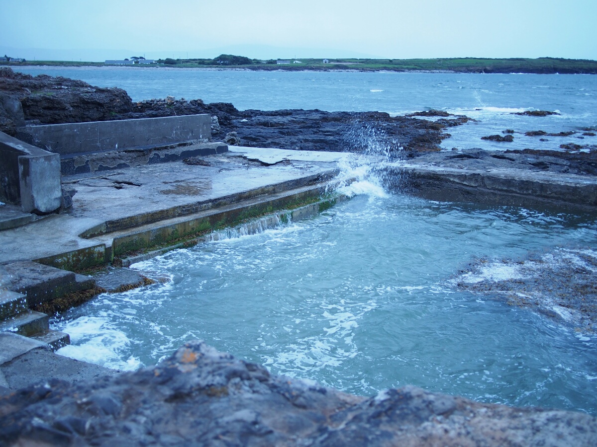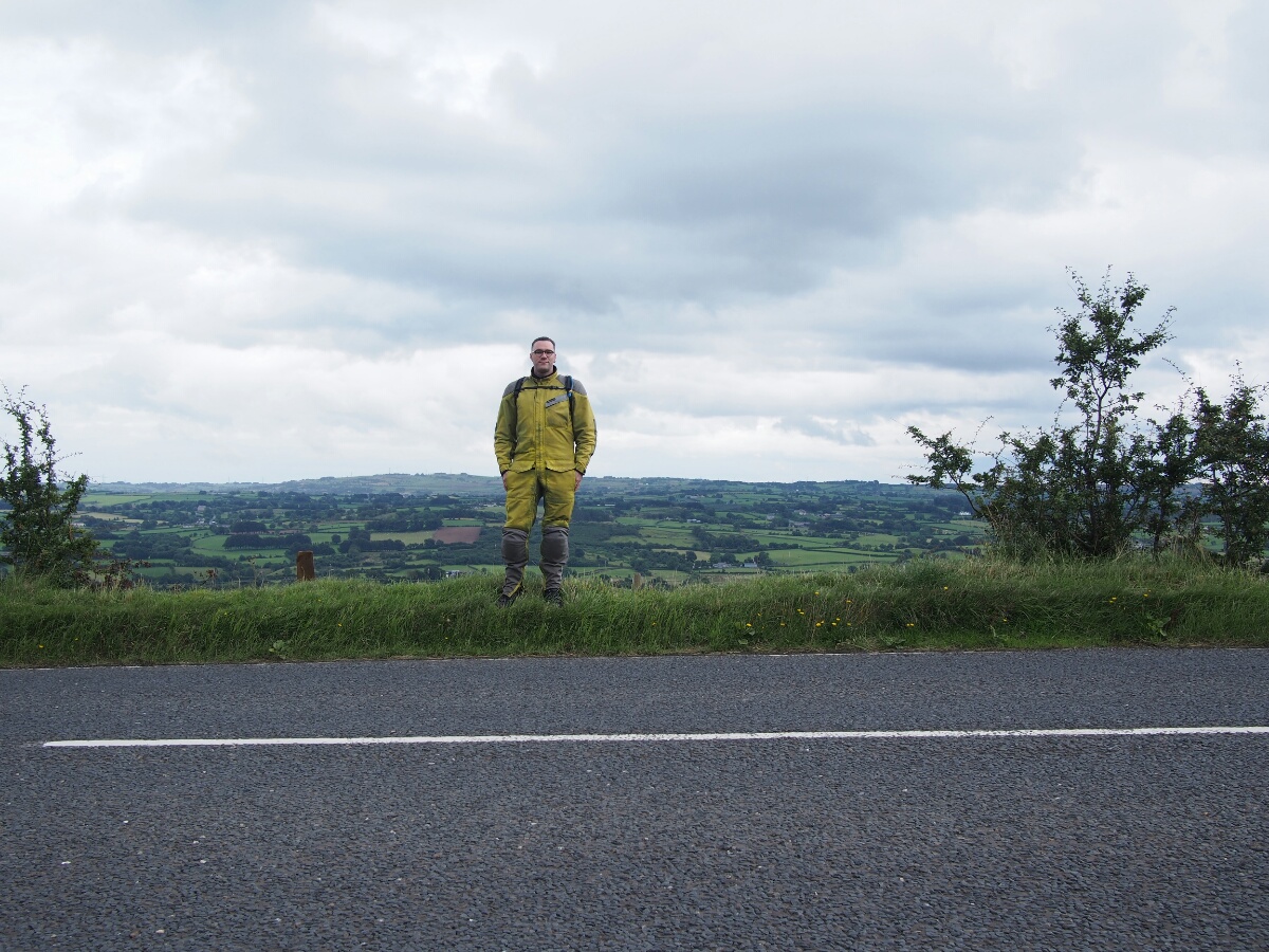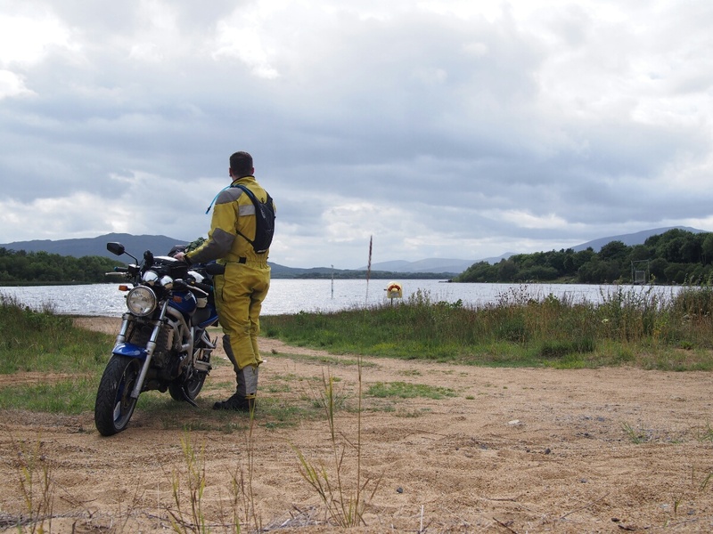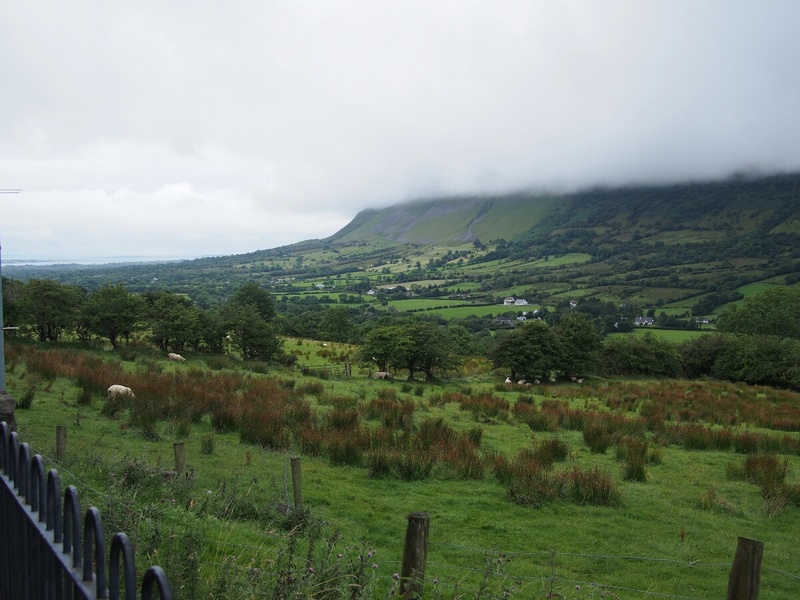 I did some research, plugging in values to the GPS, to see what it thought, and came up with the idea that I could comfortably make it to Larne (where the ferry departs) with an hour or two to spare. I couldn't dally much, but I could make it. So, I headed back to camp and started packing, including dropping off a contact card with the folks I ended up hanging out with last night (names all naturally forgotten, but one was a woman from Spokane, of all things, her Irish boyfriend, and a guy who was a scout leader from the Lakes Region in England). Turns out, when someone's dog is barking and you go up to say hi, that's a good conversation starter. I set off with a minimum of fuss and re-packing of things (I still haven't sorted out all the minute details of packing for this trip), with the clouds rolling in off the Atlantic, low and threatening and monochromatically beautiful. Speaking of the Atlantic, I went down last night and intended to put my hand into the water to see how warm it was, although what I actually did was put my hand in the path of one of the bigger and more predictable splashes. It was quite warm. This was at a structure called a "swimming pool," which included a sign saying, "No fishing in the swimming pool." It looked just like a swimming pool had been built into the rocks at the shore, except it was missing the wall that would contain the water from the sea. There was a giant patch of seaweed floating in the middle of it, which ruined the appeal somewhat. Once on my way, I decided to stop in Sligo, to pick up some tent stakes, since I found myself perpetually two short. I'm not sure why this hasn't bothered me in the past, but I imagine it's because I was in US-style campgrounds, where there was reliably some convenient piece of vegetation to tie the missing leads to. So far, I've been effectively pitching my tent on a huge lawn, so stakes are the only way. After a bit of a comedy of "Wait, how is this map representative of reality at all?" I found the place the campground clerk had recommended, and acquired my stakes. I was off, the GPS showing that I would arrive in Larne at 2 pm. A highly unlikely story, Garmin. It was another mileage day (relatively speaking -- it wouldn't have been worth thinking about if I didn't have that 3:30 deadline to get in line for the ferry), and I found myself on motorways more often than I wanted. I diverted a few times, and the GPS faithfully recalculated for me, giving me brief breaks on smaller roads when I couldn't take the slab any more. Still, nothing beats rolling down the road at 120 km/h to get you places in a hurry. A curious thing happened at the tiny town of Belcoo. I was riding merrily along, doing 100 km/h on the N16, when suddenly the sign said 30 for the speed. Odd, thought I. The lowest posted speed I'd seen so far was 50 (which is about 30 MPH). Then I read under the speed: "The speed is posted in MPH." With no fanfare or even a sign, I was in Northern Ireland. Signs in MPH, Gaelic all but disappeared from its English counterparts, and a bunch of other tiny but conspicuous changes. The one that struck me most was how, at random along the road, there would be tall poles with the Union Jack flying off them. I can't claim any real knowledge of Northern Irish history, but this struck me as being an odd sight. They weren't attached to buildings or properties in any obvious way, they'd just show up at intersections, or randomly along the roadside. The countryside changed in very slight, but still perceptible ways. There were more fields that looked untended. It was now possible to spot the occasional house that wasn't perfectly painted and tended. The hills seemed to be taller and more prominent. I also noticed the gas prices were "cheaper" -- they were now in pounds sterling rather than euros, so the number of currency units per liter was smaller by a little bit (prices went from 1.58 euros to 1.37 pounds, basically). I was nearing my goal, and I felt uncomfortable to be treating Northern Ireland as basically a thoroughfare. I didn't plan enough time for this trip, plainly. With a stop for a particularly scenic valley (they're already blending together in my mind, as I review the pictures -- good thing for timestamps and clear records of where I was at what time), I arrived in Larne.