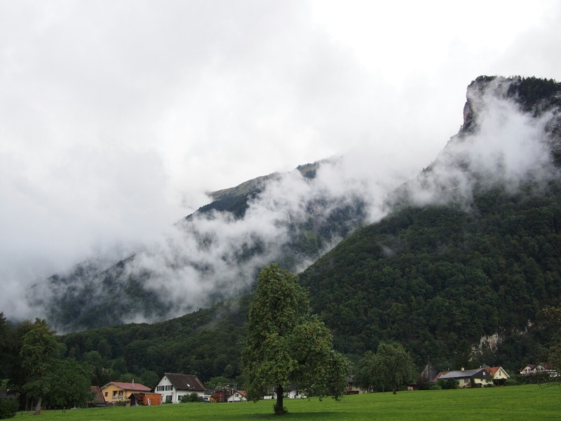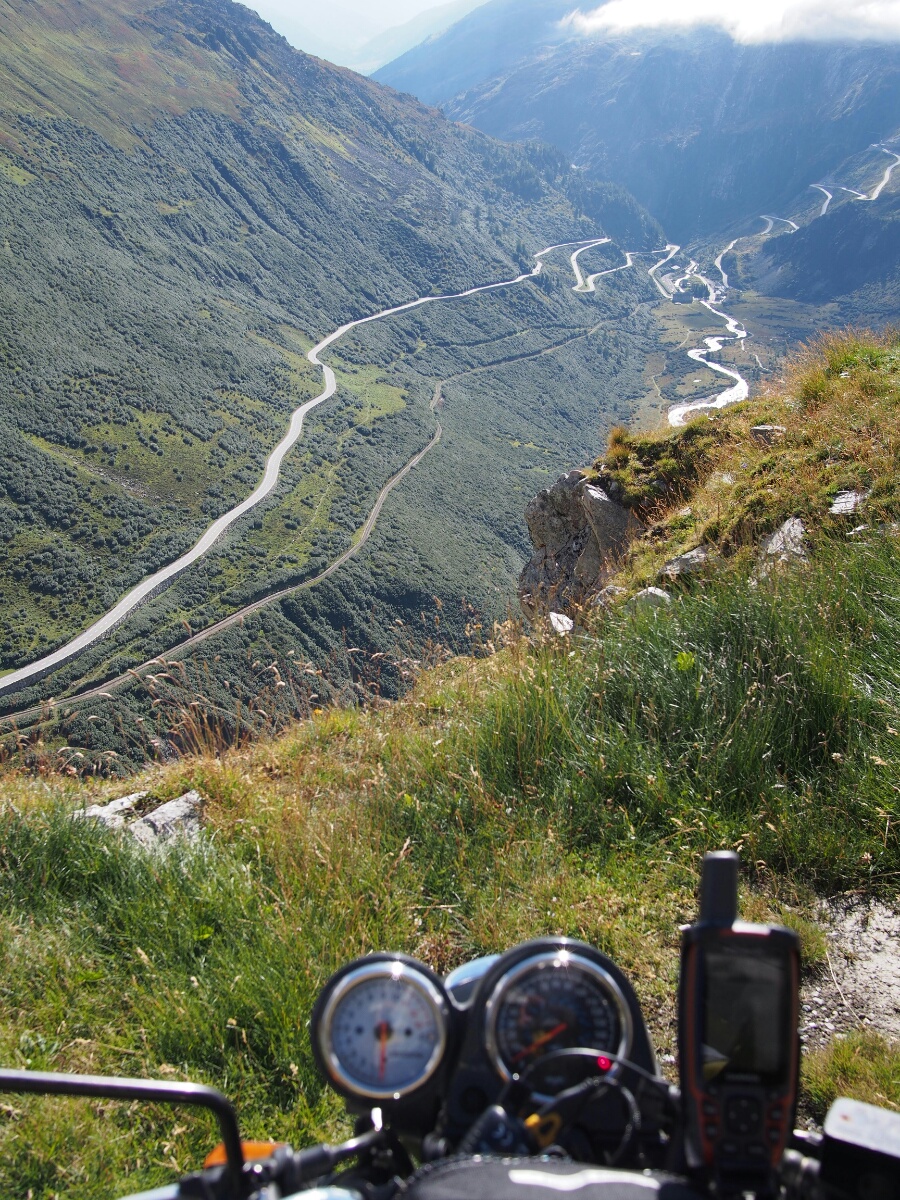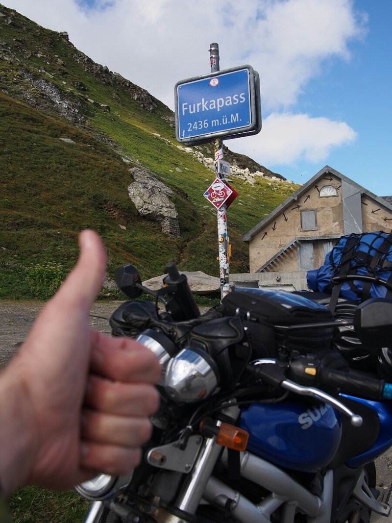 Europe 2013: Switzerland is the Best Thing EverSeptember 9, 2013 I am, at this moment, sitting in a quiet Swiss valley between Brig and Sion, watching the sun set specacularly in front of me. Cow bells, discordant yet comforting, clang a hundred meters away, worn by stalwart-looking black cows in a little field behind a beautiful if slightly dilapidated house. Crickets chirp. The clouds slowly change from bright pink and orange and red to peach, then to cream and grey as the sun sinks further beyond the horizon. Across the valley, on the opposite slope, a row of satellite dishes pointed in all directions looks out of place among the jagged, tree-strewn slopes, among the puffy clouds gently caressing and intertwining with the peaks. A gentle breeze blows the scent of the perfect outdoors past. This is the scent, this is the image, that every dryer sheet advertisement ever is trying to sell, and will never achieve. Slowly, the stars begin to emerge shyly from behind the clouds as night takes over her watch, now that the sun's duty is done. Today started slowly, then accelerated with voluble cursing, and subsided into night with a huge grin and sigh of contentment. I was up in time to see Suzanne pack the kids off to school. Juerg had gone to work very early, and stopped by shortly at 8:30 to say goodbye, then he was off. I got my things together and packed onto the bike, and said goodbye to Suzanne. On with the helmet, and off I went. The sky was full of clouds. Not the normal sort of flat grey overcast that makes every Californian transplant to Seattle wonder, just a little, if maybe the crowds and high cost of living are worth it, just to see the sun. No, these were individual clouds, clearly defined, making an overcast in the same way that inspired the "Aluminum Overcast" name for the B-52. There are a lot of them, and they are angry. Fortunately for me, the clouds did most of their angry rain-making overnight, and as I left, I received a few timid drops, but Altstaetten saw me off well. I took a tiny detour into Liechtenstein, took a couple pictures, and effectively checked it off my list. My route ran directly along the Switzerland-Liechtenstein border, and I'd made it a goal to visit the country, even if only for five minutes. Done. Once past my Liechtensteinian adventure (cling-clong-clang go the cow bells as the sky darkens from light to dark blue to black above), I got my one and only period of rain, lasting all of ten minutes. I battened down the hatches anyway, not wanting a repeat of the device-frying events of Glenuig. No worries, fortunately. I decided to start the day on the autobahn, so as to not lose too much time before getting to "the good stuff." Juerg had shown me a route that was basically from Altstaetten down to Chur, and from there to Brig over the Oberalppass and the Furkapass passes. He assured me (and he wasn't wrong) that once beyond Chur, that was the good stuff. I had programmed the GPS with a route that should have forced it to send me to the right place, but I was nearly to Zurich (basically having turned one valley too early before I realized that the GPS had led me into a colossal blunder. Apparently (I realized well after the fact), when the GPS has a route programmed in, and you change its routing preferences, say from avoiding freeways to not avoiding them, it forgets that it was following a route. Instead it takes the end-goal of the route, and goes straight there -- if you'd told it to take you from Seattle to Chicago via Florida, you'd find yourself routed through Montana and Minnesota. Of course, I don't know my Swiss geography all that well, so it wasn't until my route unexpectedly turned southward that I realized anything was amiss. It was an odd feeling to be so unreasonably angry at this little inane device for inadvertently causing me to see more of Switzerland than I'd intended to see. The flip side of that coin, which is what I was so vividly cursing the thing for, was that it had also caused me to waste two hours of travel time, meaning I would never make it to my goal for the day (Montreaux), which could conceivably make me late into Paris. I'm not sure it was the right choice to reverse myself and go back to the route Juerg and I had planned out, but that's what I did. The first and best decision I made at that point was to shut off the GPS's routing, and just let it show me speed and where I actually was on the map. As in the past, I realized that this keeps me more heads-up, and more aware of where I actually am, instead of being led blindly through every turn. Plus, I simply didn't trust the thing to route me correctly at this point. Something about changing the routing preferences is a little buggy, and it doesn't always register the preferences I think I've set. So it was full-speed autobahn to Chur (all 120 km/h of it, or about 75 MPH), where I made my turn, and got back on track. You know, two hours later than expected. However, Juerg's directions did not disappoint. The road up to the Oberalppass was awesome, and as in Austria, I must have stopped at just about every safe opportunity I could find to take pictures. It certainly slowed me down, but I didn't regret a bit of it. It started out as a normal Alpine valley road, but slowly rose off the valley floor and got narrower and windier and steeper. The views got correspondingly more impressive. I remain astounded at the places you can find hotels and restaurants in Switzerland, such as at mountain passes on roads that a semi truck literally could not drive (the switchback turns are too sharp). If you imagine this whole account written in flowery poetic language, you might come close to how I was feeling during this drive. Every slope and valley was another explosion of beauty. I literally caught my breath numerous times when I came around a corner, and suddenly BAM another gorgeous, movie-set-perfect scene seared into my conciousness. Sunburned wood houses nestled improbably into 