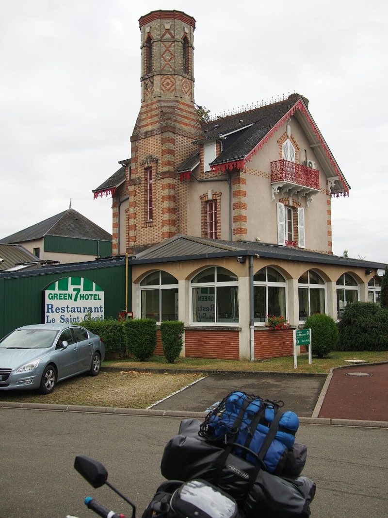 Europe 2013: Just Another Day on the BeachSeptember 15, 2013 I got to my campground particularly early today, since I didn't have that far to go, and just woke up from a nap. France did indeed have a decent day in store for me, although the reason I woke up was because of the sound of rain on the tent. Still, it was pleasant and dry for the whole time I was riding, which is what really matters to me. I woke up in the hotel having had very distinct dreams about someone in Marseilles whose bicycle wheel kept falling off at a particular moment in a journey they took regularly, and how I fixed it by adjusting the chain tension. Then it was down to breakfast (definitlely living Motel 6 style -- the "continental breakfast" was discernible from the American version only because it was heavy on the croissants and missing the branded sugar-based breakfast cereals). Of all my stuff, only the gloves and the boots remained damp from the rain yesterday, which is pretty much what I'd expected. I was on the road just before 9:30 (it's amazing how much time savings there is in not having to pack up camp), and headed for La Ferte-Mace. I know I've mentioned it before, but La Ferte-Mace is the primary setting for _The Enormous Room_, which is pretty much ee cummings' only "conventional" novel (and even then, it has some interestingly unconventional aspects). In the book, he describes his time in France during WWI, starting out as a volunteer ambulance driver with a company of American volunteers (with the sneering chief, who habitually refers to the "dirty Frenchies"). His friend B writes some letters which get them both taken away by the great and good Gouvernement Francais and sent to a place which is technically not prison, but enough like prison to make no practical difference. This prison is the Camp de Triage, located in La Ferte-Mace, France. All the men are kept in a giant dingy room with all the windows by one blocked off, sleeping around the perimeter of the room on straw-filled matresses. There are various winding staircases and passages in the place, some offices, a cafeteria, a cold-water-only shower room which they're forced to use once a week, and a dismal outdoor courtyard with a sad apple tree and a little shed where the guard is stationed. The book is very evocative, and is not "a book about being in prison" or "a book about being a prisoner of war" except in the most tangential way. It's a book about sense impressions (mostly positive) and taking delight in one's situation, exploring the people around the author. It just happens to take place in a prison during wartime. In any case, I was very curious to see how my mental image of the place stood up to the place itself. I got to La Ferte-Mace, and my first impression was to be very surprised at the size of the town. It's not huge, but it's a sizeable town with probably 30-50k inhabitants, at a guess. It's described as a fairly miserable little place in the book, but I suppose that's only fair, since cummings really only existed inside one building the whole time he was there. I got to the town center, where there's an impressive church (service in progress, as I'd gotten there about 11 on a Sunday), took a few pictures, wandered around a bit, and realized that I hadn't the faintest clue *which* building he'd actually lived in during that time. Fortunately, Orne, France (the district La Ferte-Mace resides in) maintains a municipal free wifi service, and I was able to get online and find a scholarly-looking paper about an American who visited like I was, to try to find out more about the place. He said that the building was now called the Lycee des Andaines, and had been substantially modified since WWI. I was a few hundred meters from the right spot. Obviously I have no idea which windows cummings would have been looking out of, or which bit of ground would have been the muddy cour, or anything else, but I did walk around the building and take a bunch of photos. I saw the street he must have pushed the water cart up to get to the water pump. There was an open spiral staircase I climbed (getting a nice cut in the process: whoever welded up those railings needs to work on their finish work) and took a photo of the trees and fields beyond the building, which are described in the book. I think there's a new, single-storey building there now which wasn't there in 1917 (or whenever the book was set, I can't recall now), which gets in the way of the view. In all, it was very interesting to see the actual building he was kept in. The author of the scholastic paper who describes finding it goes on to say that at the time he visited, only one person at the school had even heard of ee cummings, and had been involved in a 1984 project covering the history of the school's buildings, which included some material on cummings and _The Enormous Room_. I'm glad I was there on a Sunday, so everything was closed up. I think my French is sufficiently bad that I never could have explained why I was there, or why I was wandering around taking photos. It would have been cool to see the inside of the building, but I think it's so very different now, that I wouldn't have been able to recognize much of anything from the book. Satisfied, I turned to my next task: finding a place to spend the night. I looked at the map, and realized I was really quite close to Cherbourg, where I need to be tomorrow afternoon to catch my boat to Ireland. I picked a likely-looking spot near the coast to the south and west of Cherbourg, and chose a campground at random. I ended up at Municipal Le Clos Martin in Pirou-Plage. Once past Domfront, the GPS sent me along more very narrow country lanes. I kept thinking about stopping to take a picture, but then thought I could never get the size of the road across, which was really the remarkable thing about it. Then I saw a car on the road, and I was surprised at how, even riding along the road myself, I had dramatically overestimated its wi